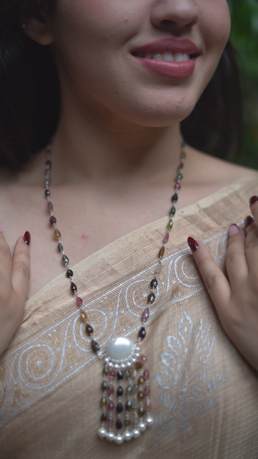 Luxe Necklace - Green Onyx, Rubies and Pearls | 92.5 Silver