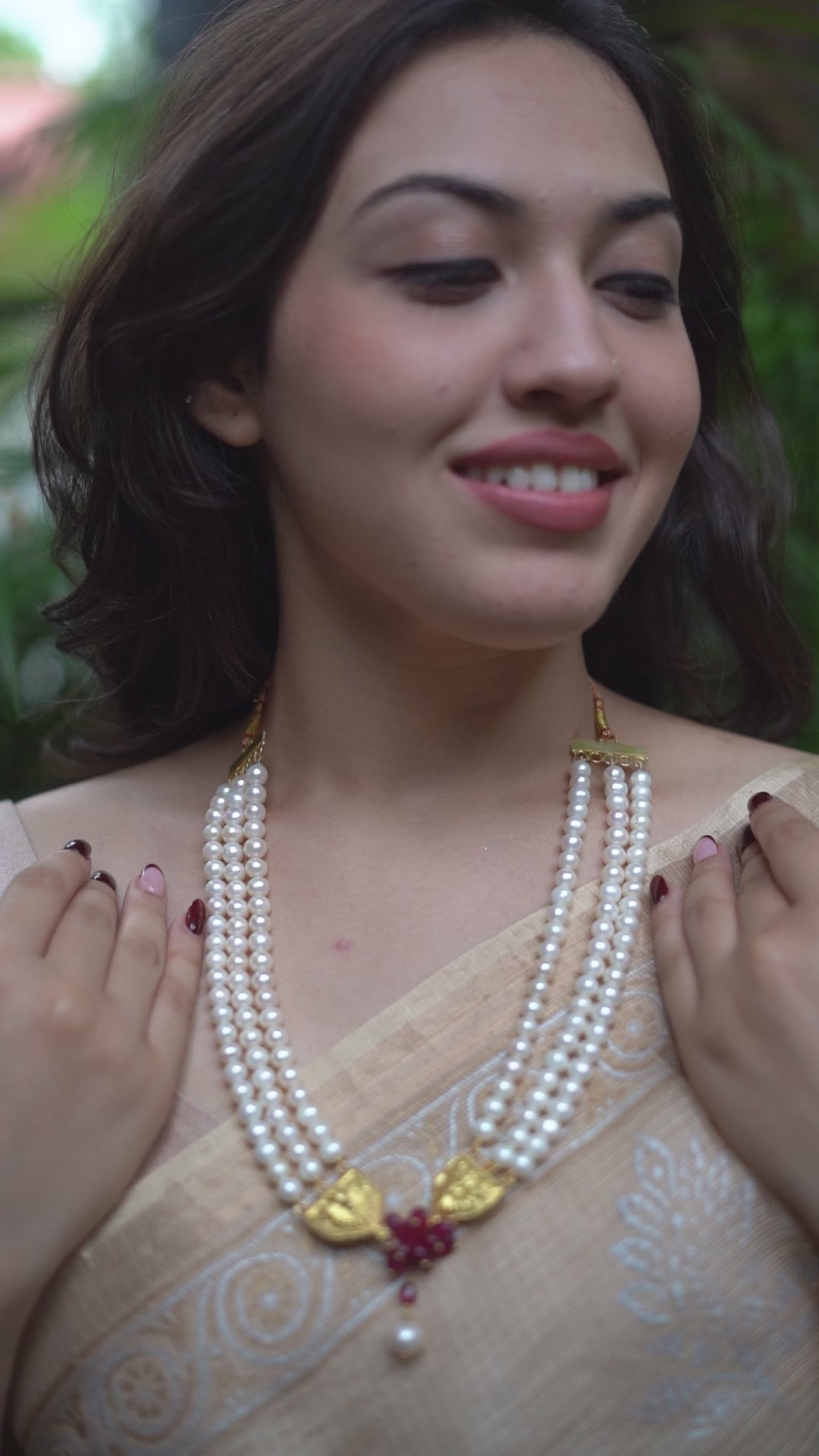Luxe Necklace - Ruby and Pearls | 92.5 Silver | 22k Gold Plated
