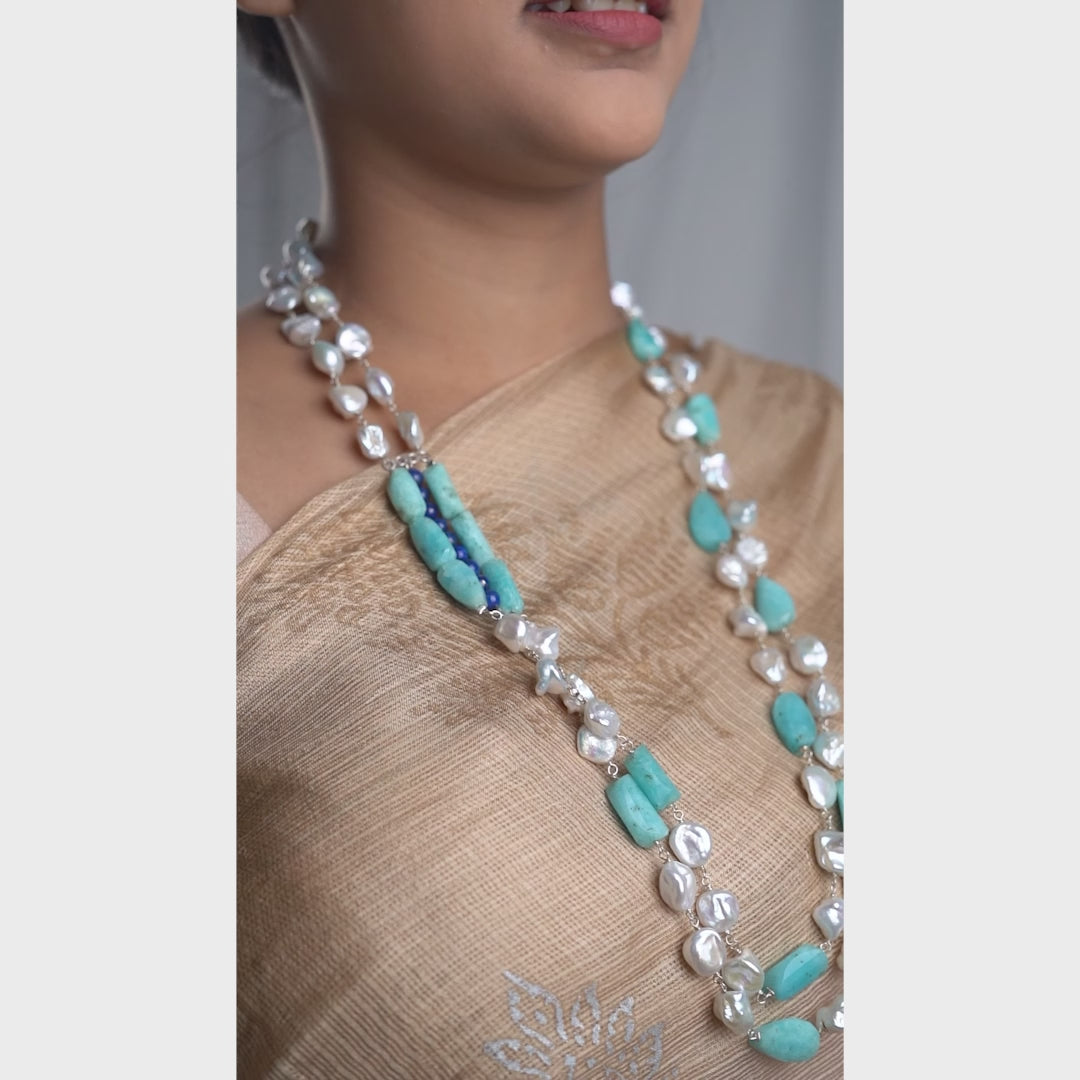 Luxe Necklace - Lapis Lazuli, Larimar & Boroque Pearls
