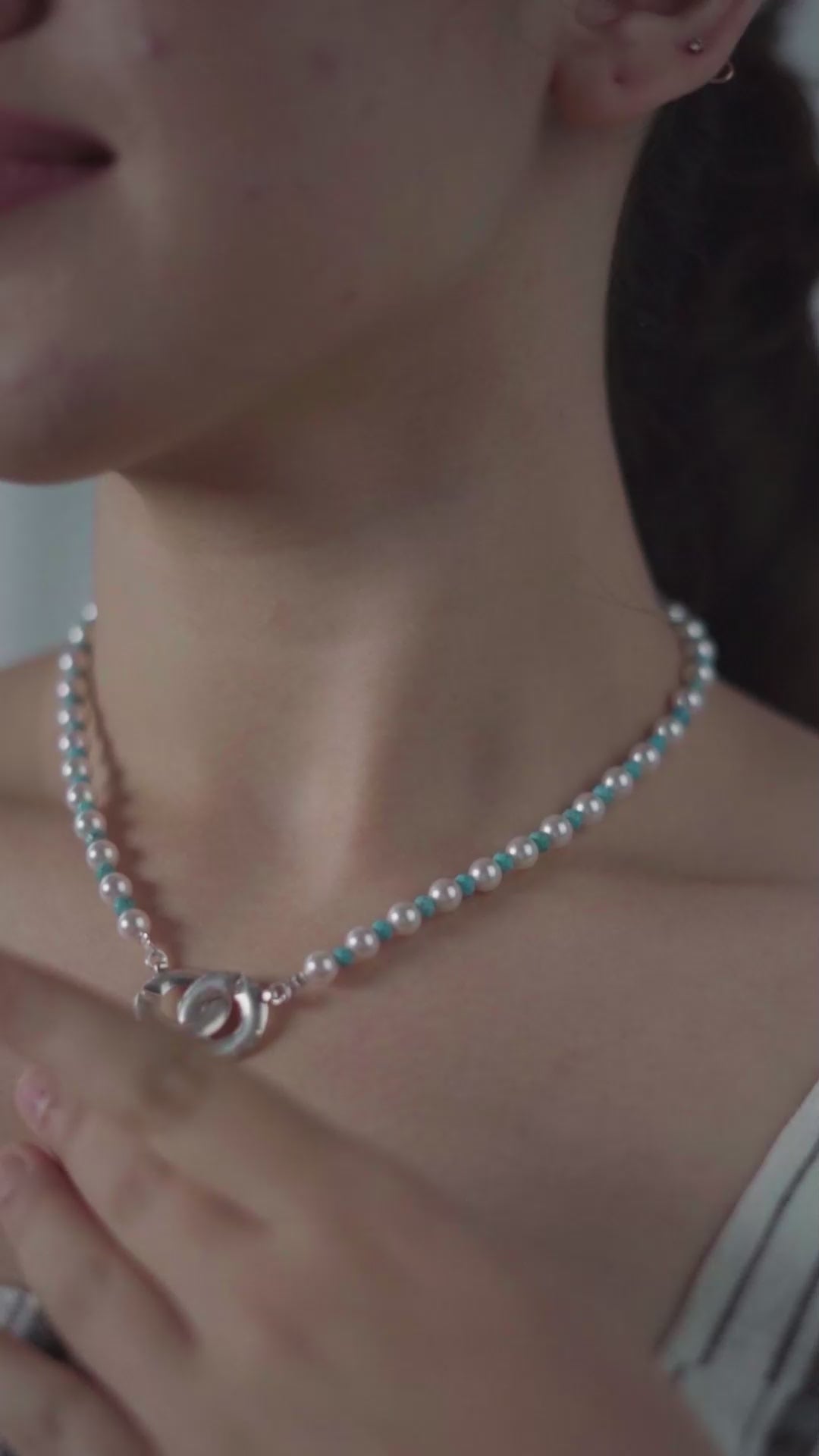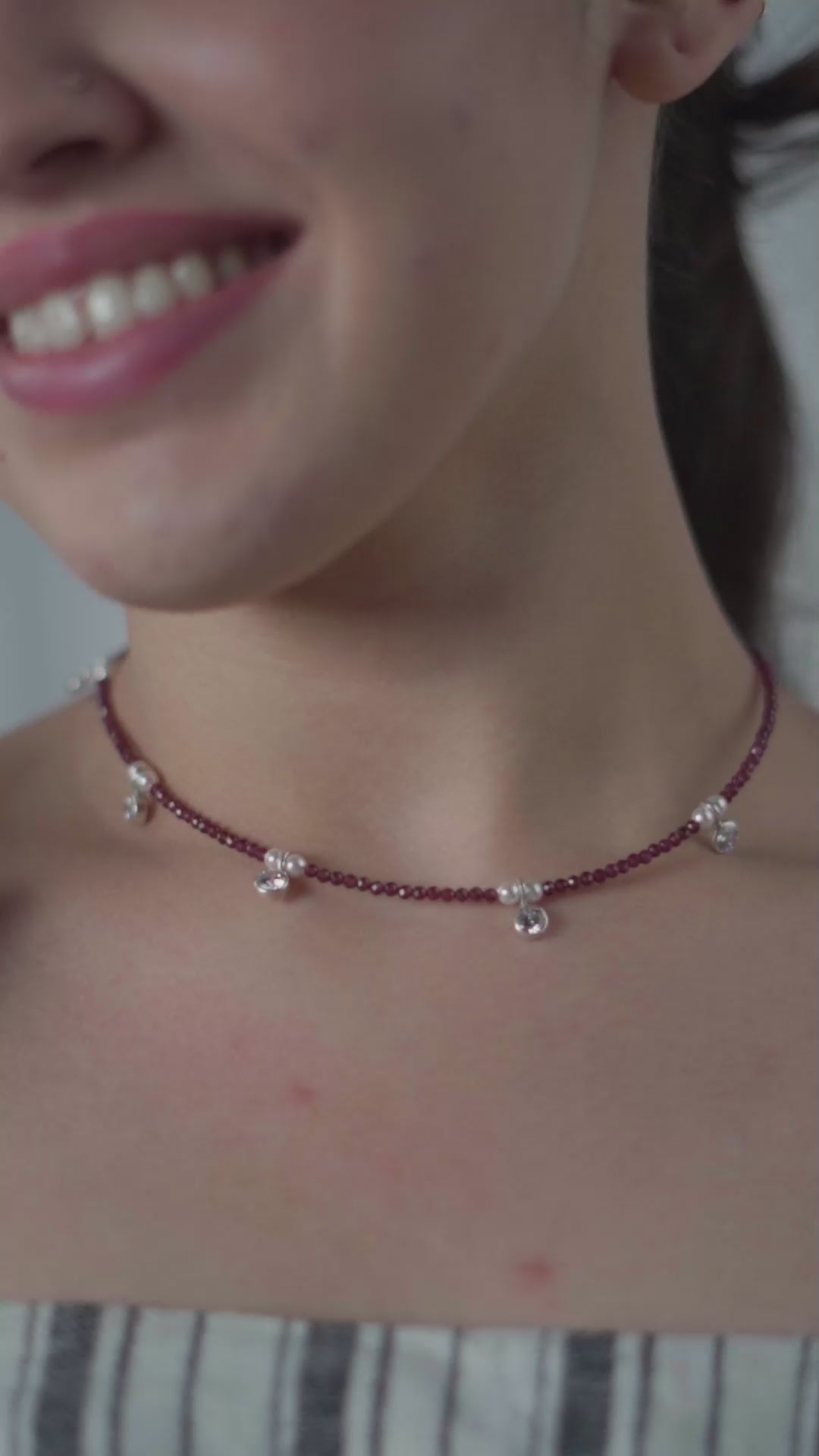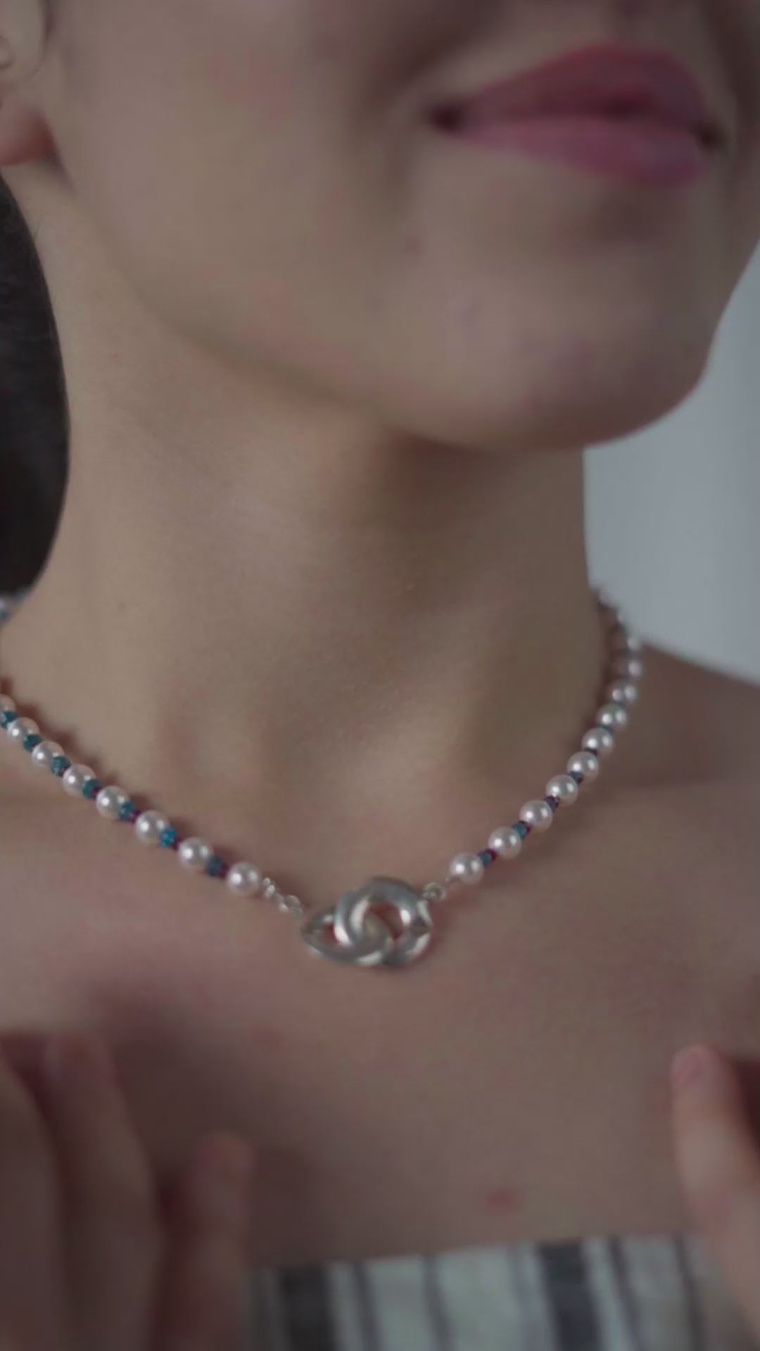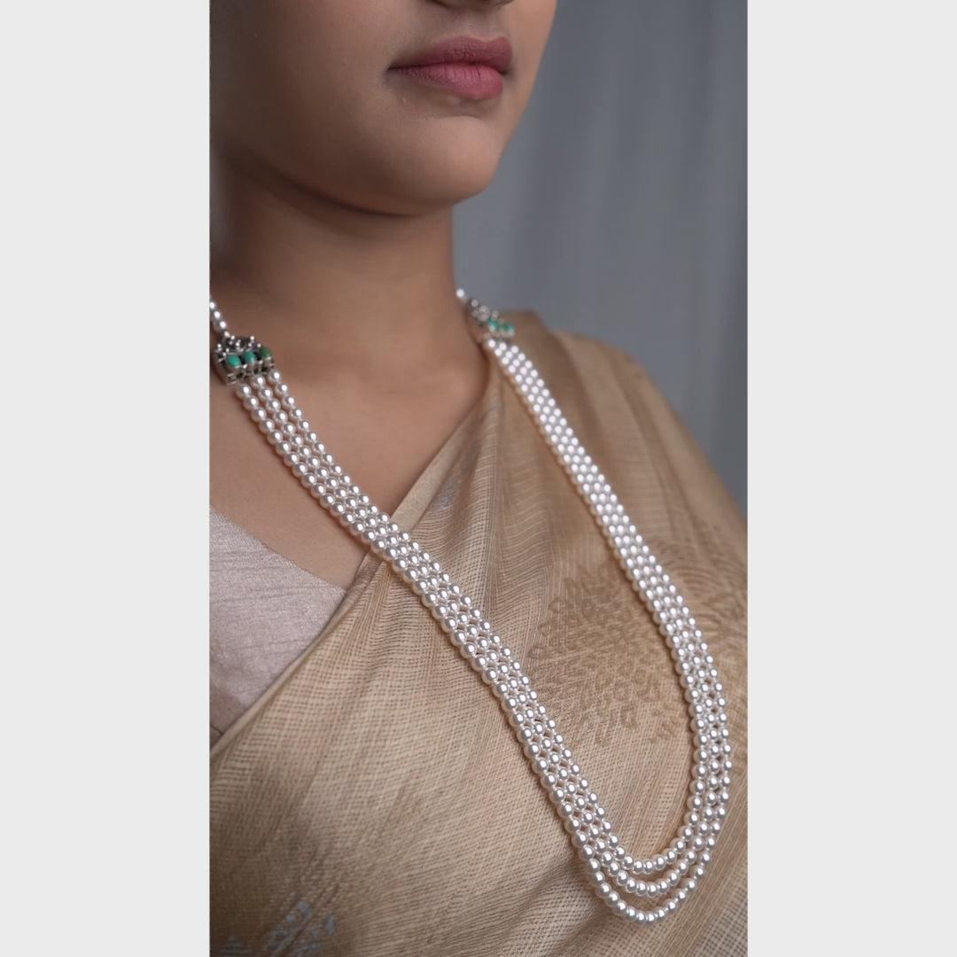 Silver Pearl Ganthan Necklace with Black Spinel and Crystal