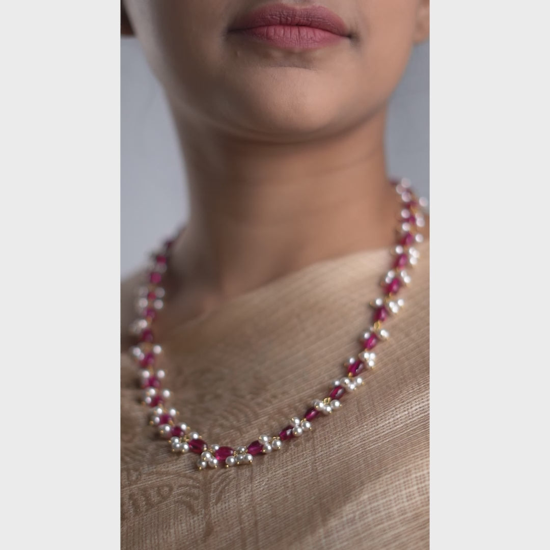 Luxe Necklace - Ruby and Pearls | 92.5 Silver | 22k Gold Plated