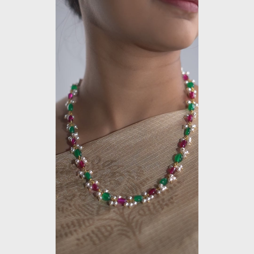 Luxe Necklace - Green Onyx, Rubies and Pearls | 92.5 Silver