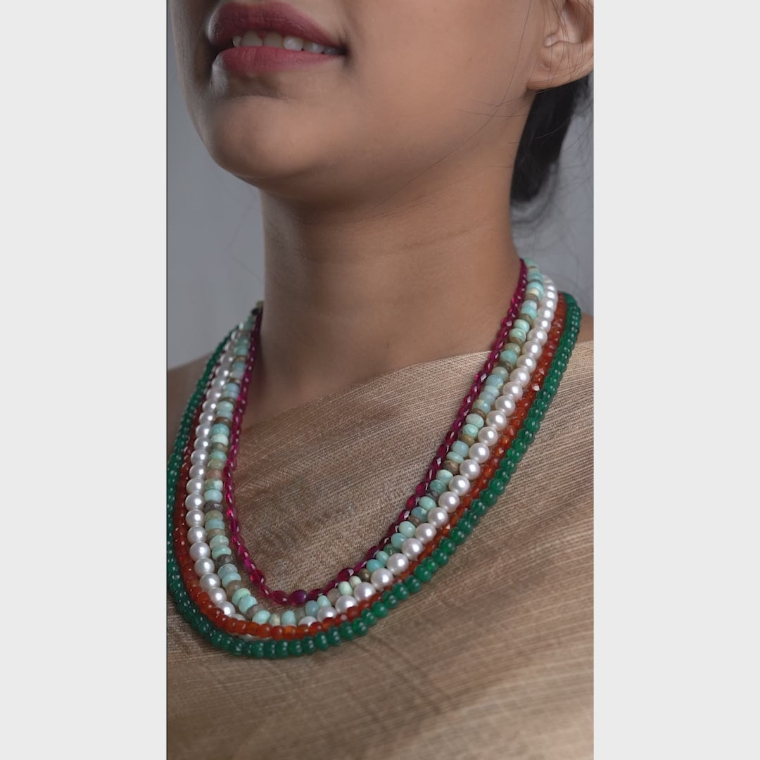 Luxe Necklace - Multicolour Stones and Fresh Water Pearls