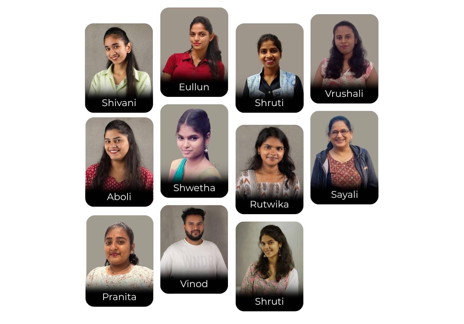 of Aboli, Shruti, Shivani, Saroja, Kajal, Pranita, Vrushalli, Eullan,