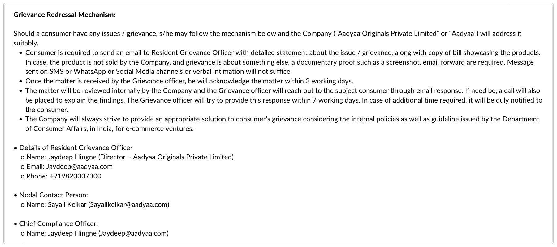 Email :sales@aadyaa.com