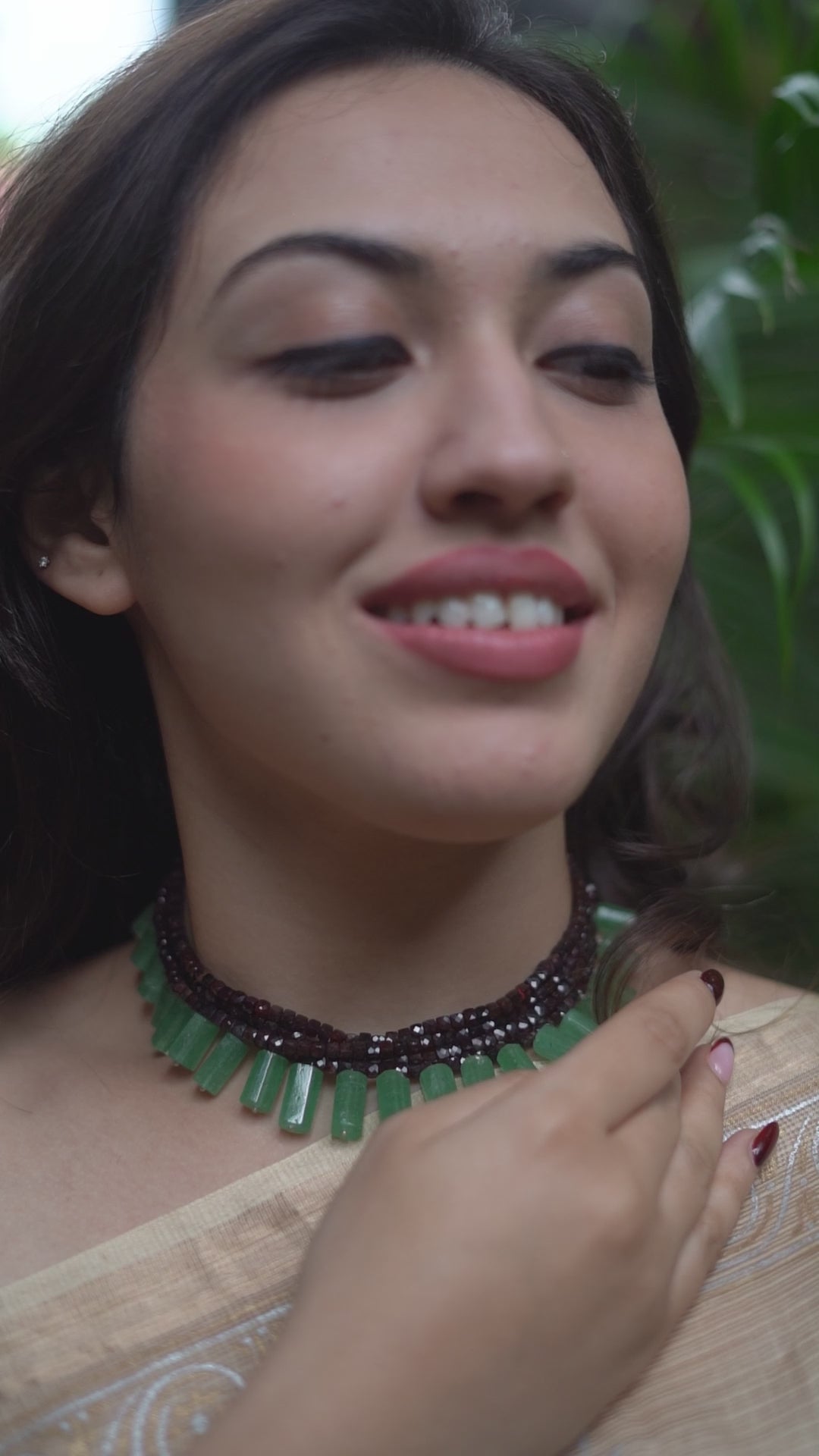 Luxe Choker - Russian Green Stones and Garnet