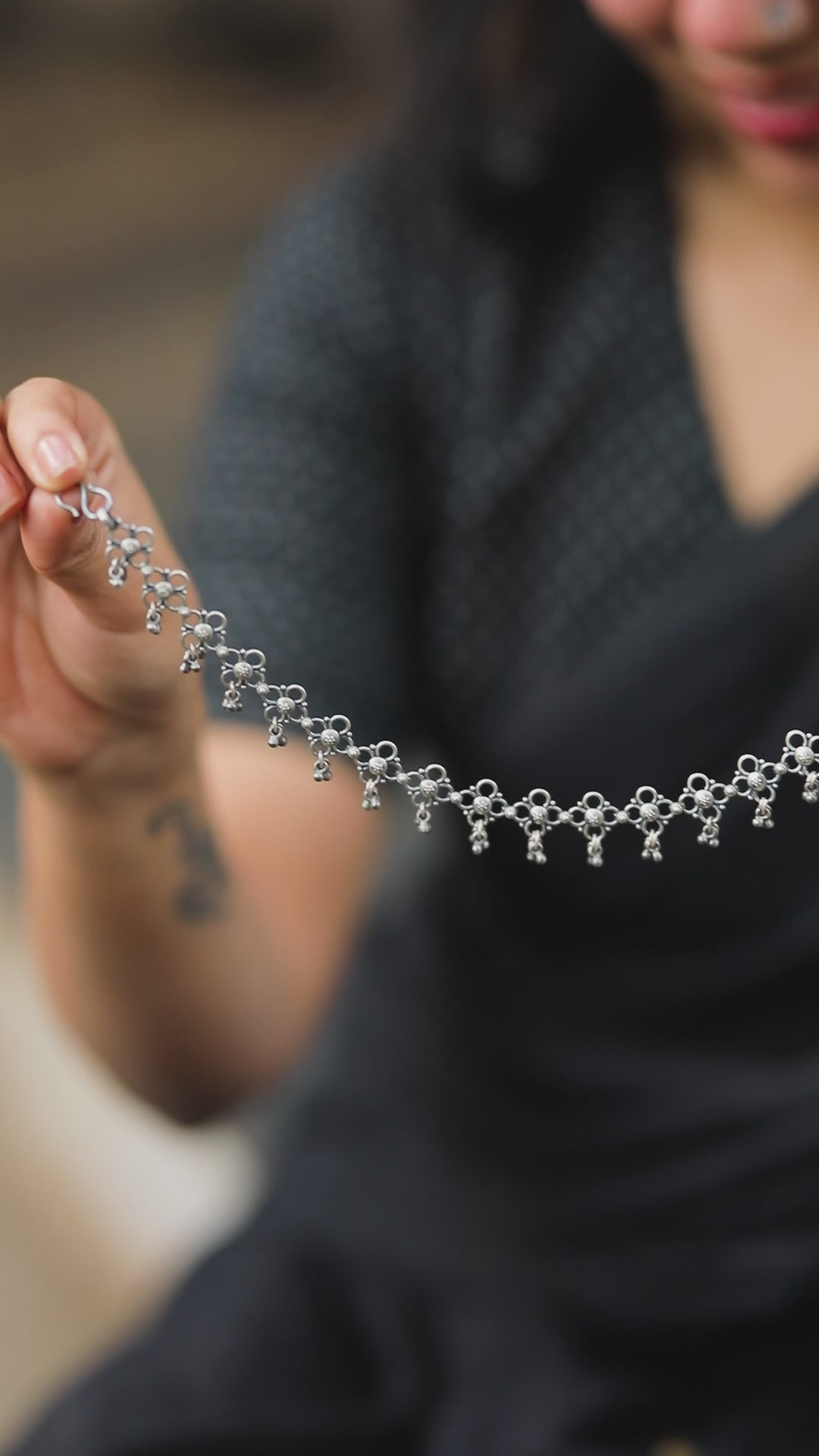 Flower Motif with Ghungaroo Delicate Silver Set Convertible Necklace and Anklet
