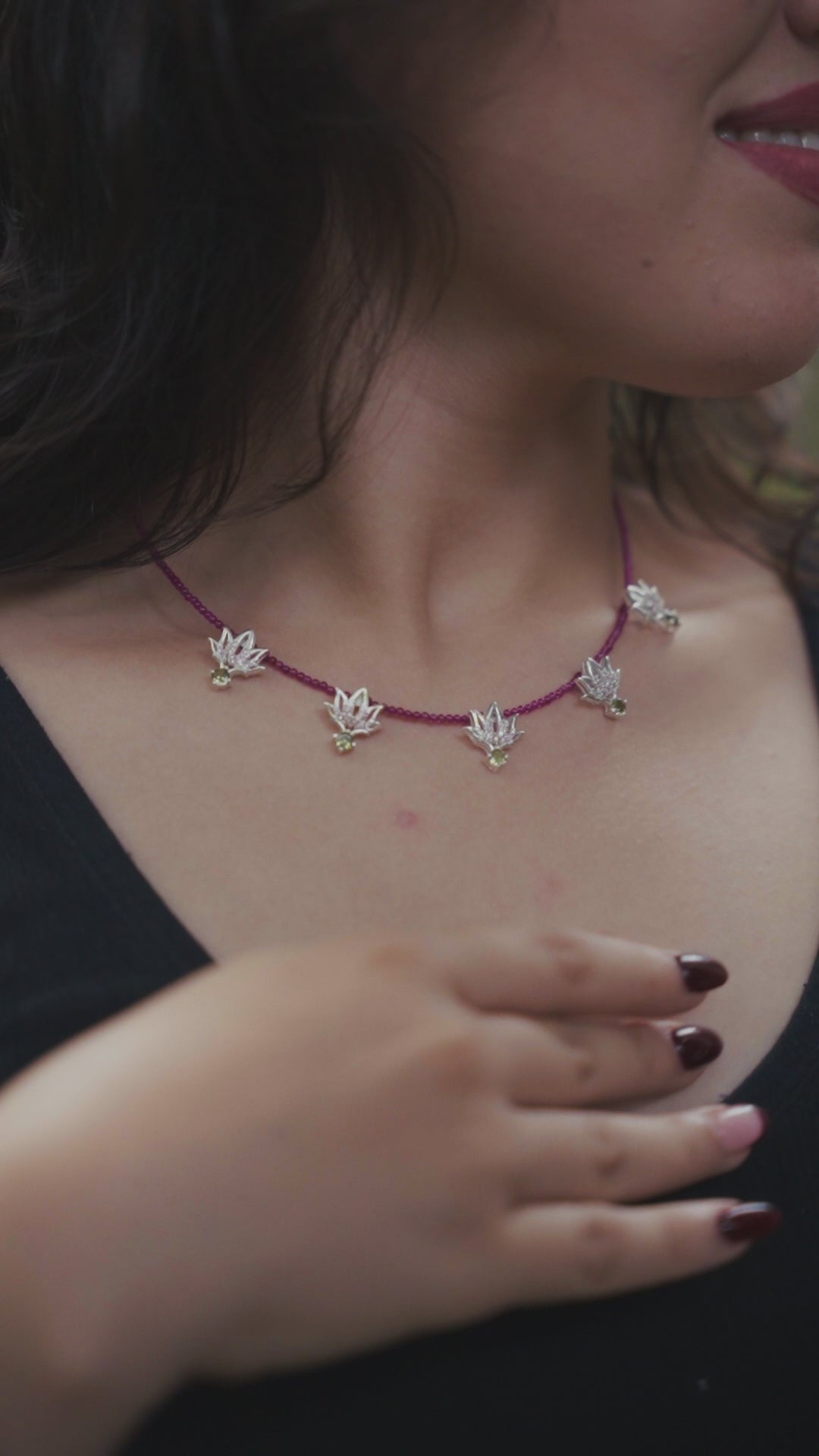 Silver Lotus CZ pendant necklace with ruby | 92.5 Silver | 22K Gold Plated
