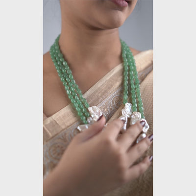 Cultural Classic (Organic Luxe): Green quartz symbolises clarity and renewal; baroque pearls celebrate natural individuality