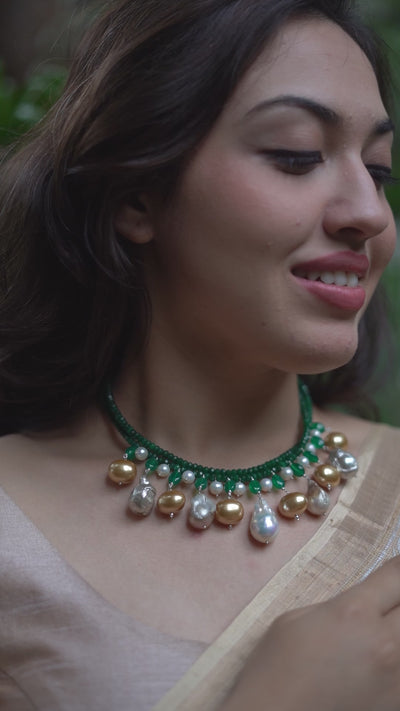 Luxe Necklace-Green onyx, fresh water Pearls and Baroque Pearls