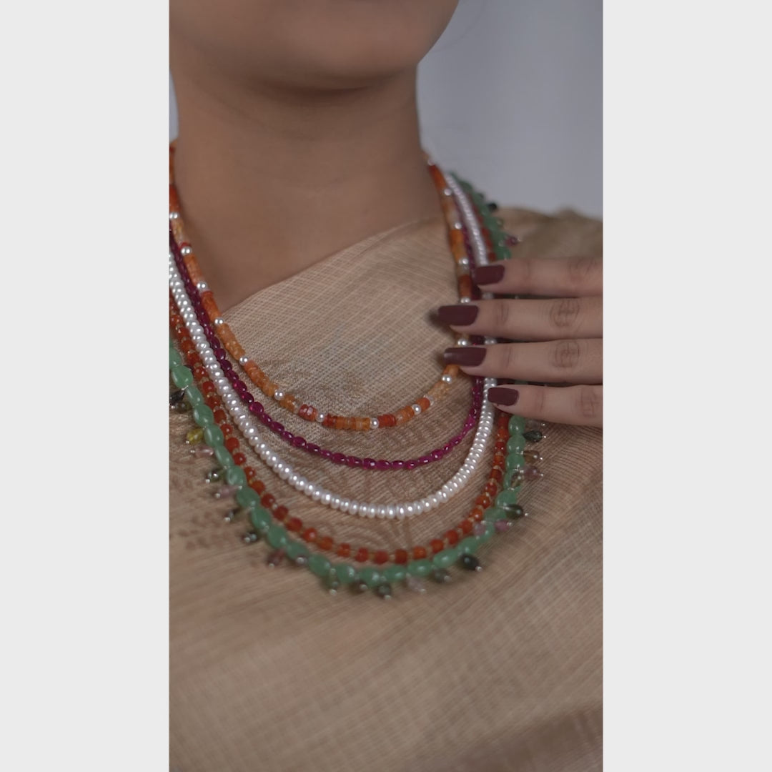 Luxe Necklace - Multicolour Stones and Fresh Water Pearls