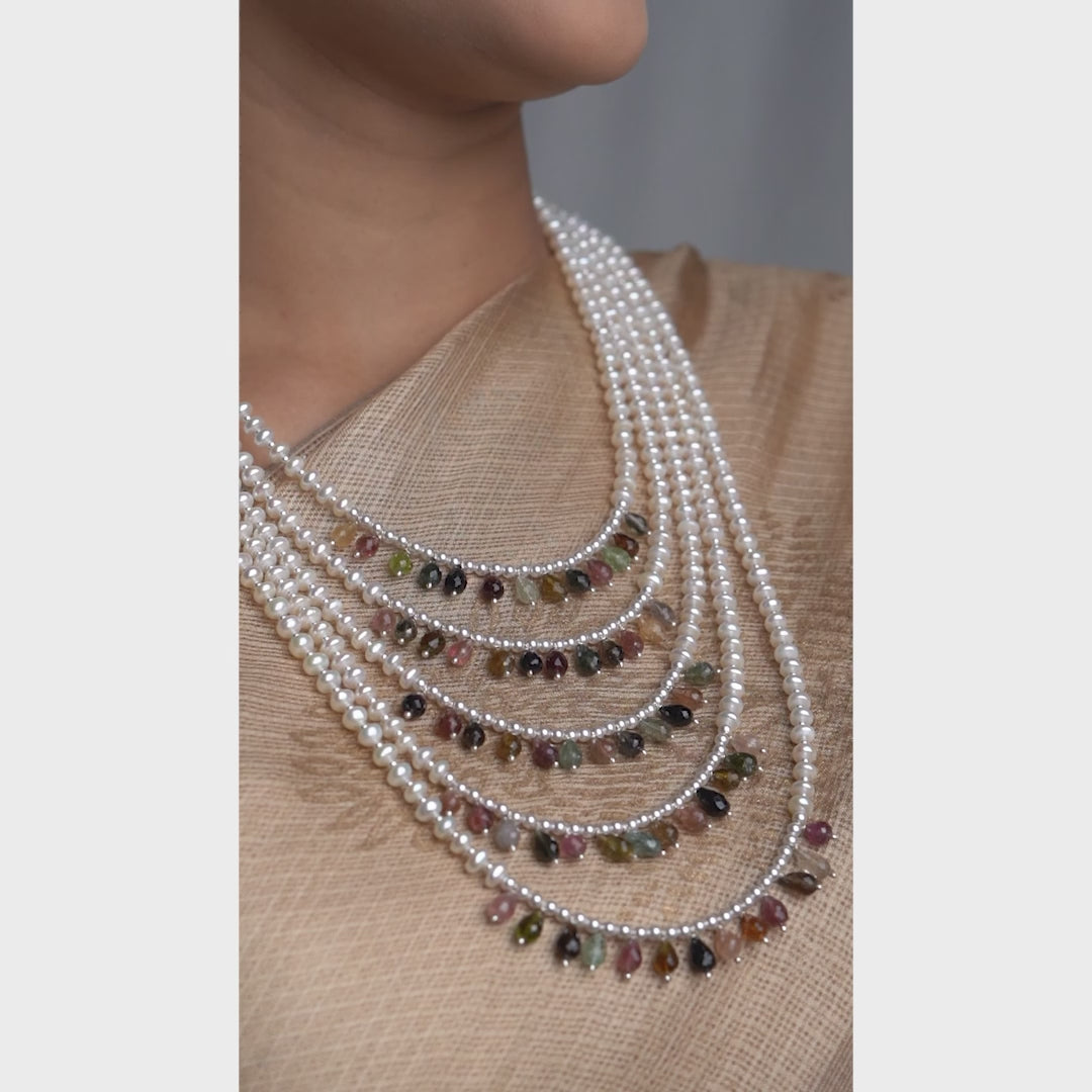 Luxe Necklace - Tourmaline and Fresh Water Pearls