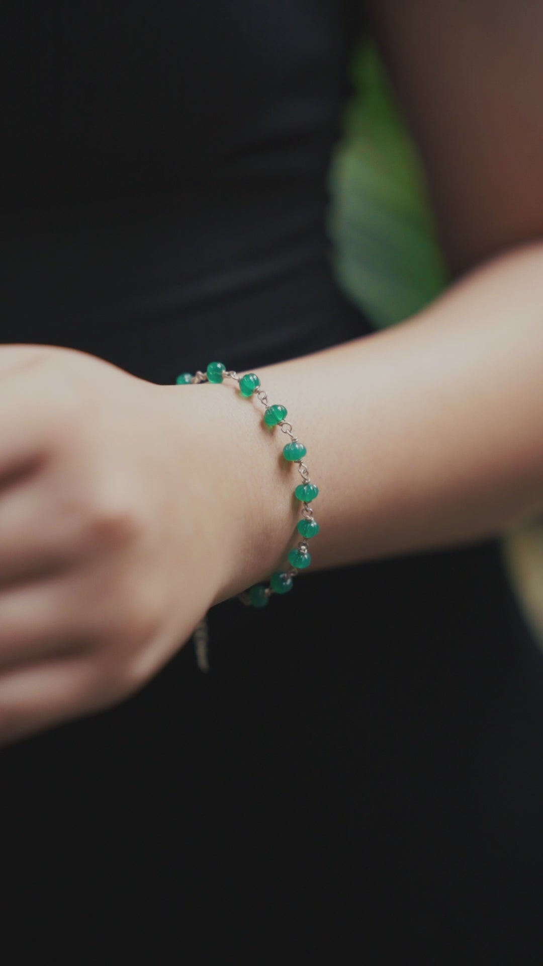 Silver Green Onyx Ganthan Bracelet