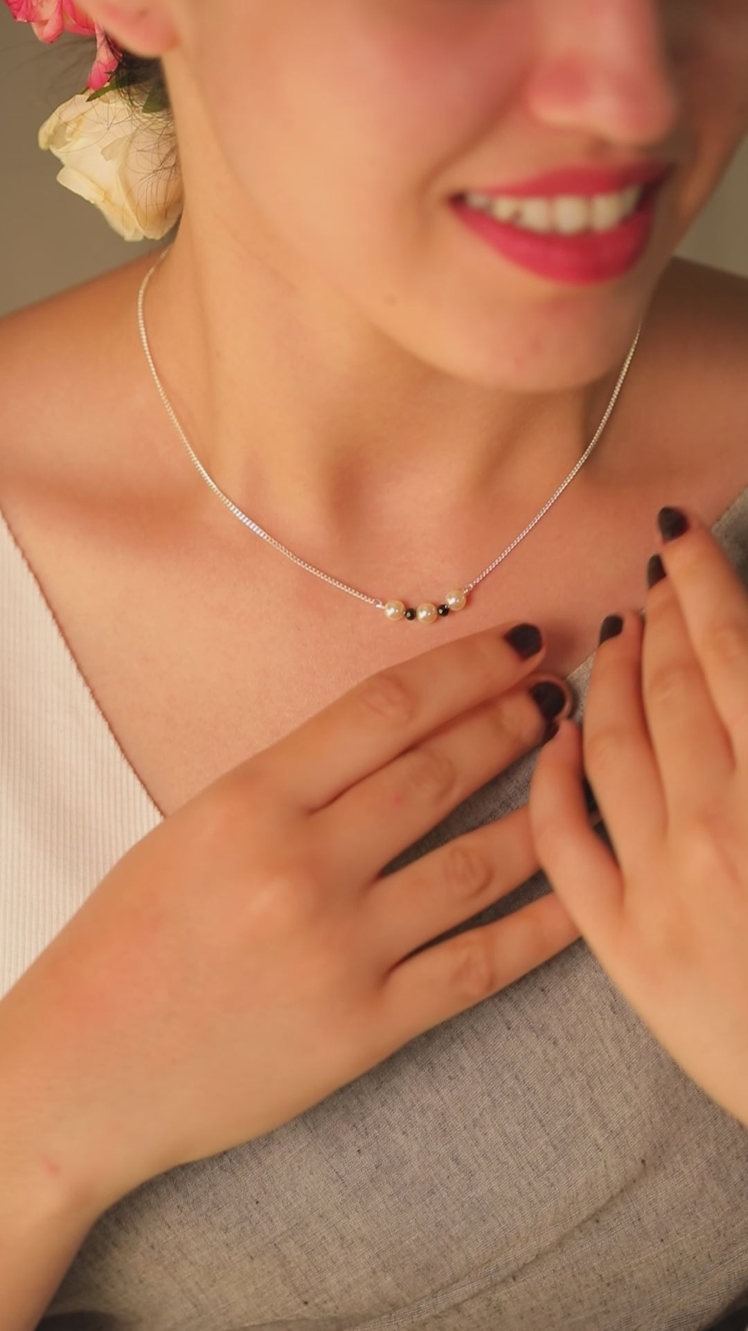 Silver Chain Pearl Mangalsutra : Cream Pearls and Spinel